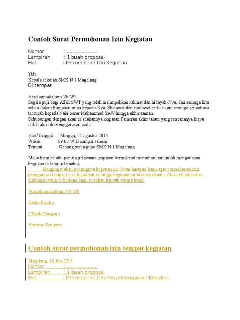Contoh surat izin adalah sebuah surat yang dibuat dengan tujuan untuk meminta izin kepada penerima bahwa sang pengirim memiliki hajat / acara tertentu sehingga tidak bisa hadir atau melaksanakan kegiatan seperti biasanya. Misalnya permohonan izin, permohonan kerjasama, permohonan beasiswa, dan lain sebagainya. Surat yang resmi biasanya ditujukan kepada suatu instansi. Sebagai seseorang yang hidup bersama di dalam sebuah masyarakat tentu akan dihadapkan pada berbagai masalah yang melibatkan individu dengan orang lain. Surat permohonan sendiri dapat bersifat resmi atau pun tidak resmi. Contoh surat permohonan berbagai keperluan yang benar. Contoh surat permohonan izin mengadakan kegiatan. Contoh surat izin tidak kerja alasan sakit. Contoh ucapan pernikahan terlengkap untuk teman, sahabat, adik, kakak, rekan kerja, teman kampus dan mantan. Semoga artikel ini bermanfaat ya, sahabat 99! Hal tersebut menyebabkan adanya rasa saling ketergantungan atau. Surat permohonan biasanya dipakai oleh seseorang, organisasi, instansi, atau badan usaha untuk mengajukan suatu permohonan secara formal kepada pihak lain. Saya ingin menyampaikan permohonan maaf saya kepada pimpinan toko alat tulis alba karena kesalahan kami dalam mengirim barang yang mana kesalahan itu terjadi tanggal 12 november 2014 yang lalu.